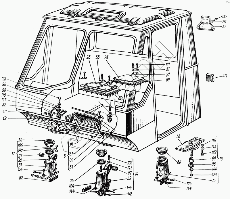 Графический каталог запасных частей к технике: ХТЗ Т-150. Кабина