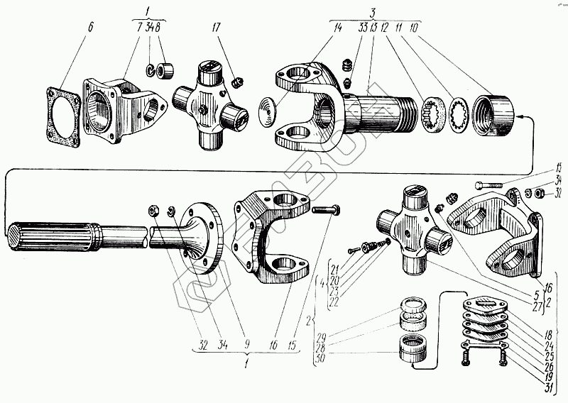 | 2 | 150.36.013А | Крестовина кардана с подшипниками в сборе |