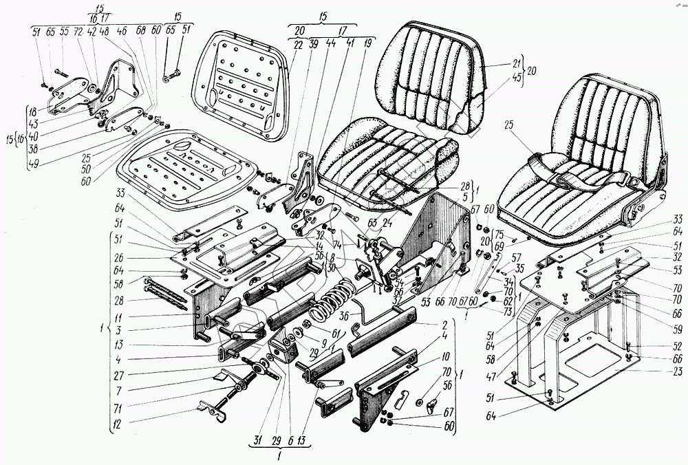 Графический каталог запасных частей к технике: ХТЗ Т-150. Сиденья