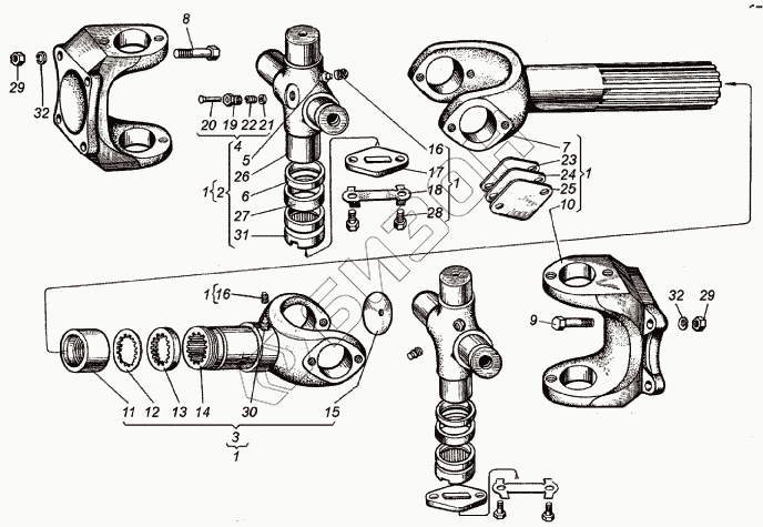 | 2 | 150.36.013А | Крестовина кардана с подшипниками в сборе |
