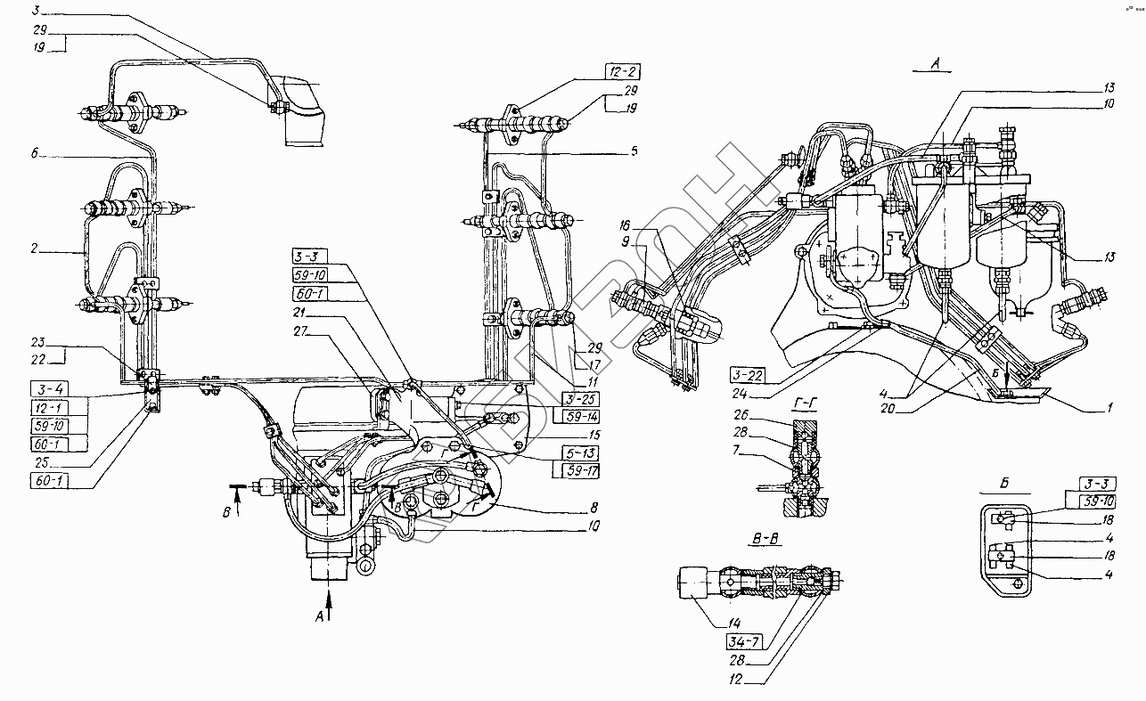 | 6 | 60-15037.11 | Топливопроводы к четвертому, пятому, шестому цилиндрам |