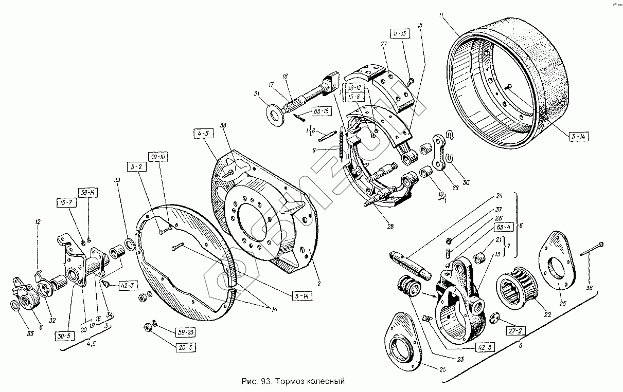 | 5 | 151.38.056 | Кронштейн тормозной камеры левый в сборе |
