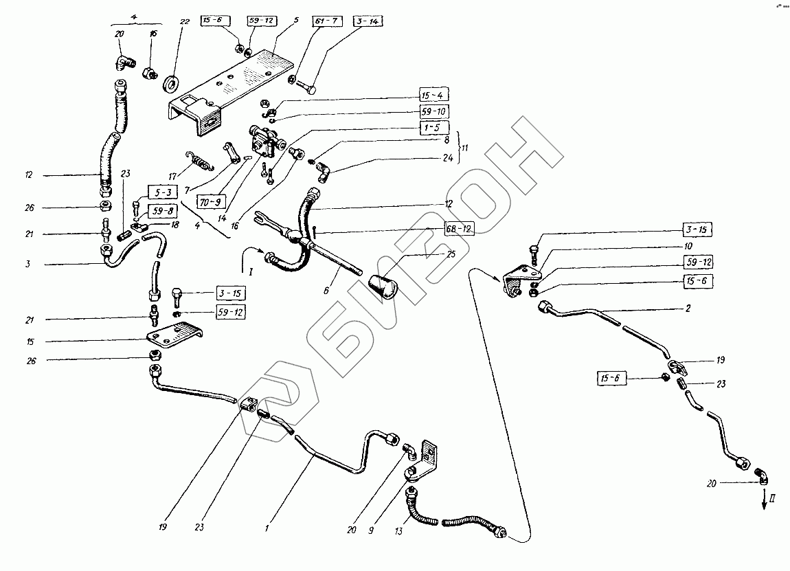 | 13 | 200-3506060-Б1 | Шланг к передним тормозным камерам гибкий в сборе |
