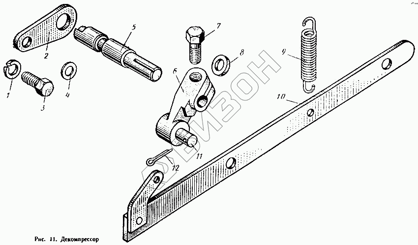 | 6 | Д37М-1019050-А | Рычаг декомпрессора с пальцем в сборе |