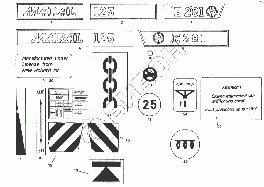 Графический каталог запасных частей к технике: Кировец-Ландтехник Е-281 "MARAL-125". Таблички и наклейки