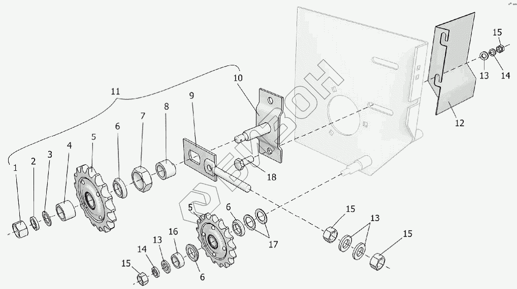 | 11 | РСМ-800.12.02.250 | Звездочка натяжная |