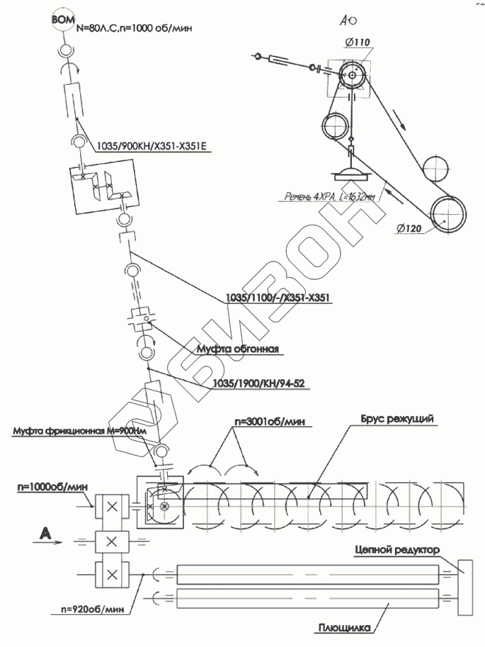 Графический каталог запасных частей к технике: Клевер КРП-302 "Беркут". Схема кинематическая