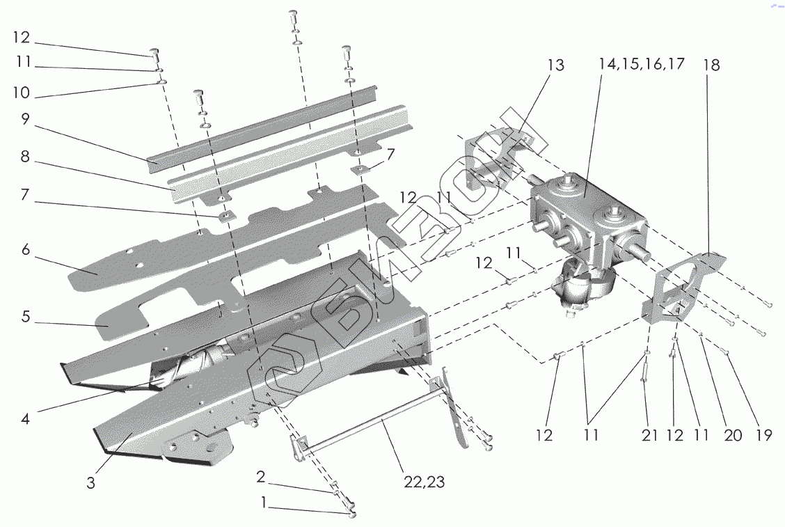 | 15 | 034-01.ААВЕСС.L | Редуктор русла левый |