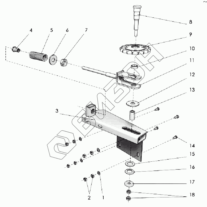 Графический каталог запасных частей к технике: Клевер ПСП-1210 "Falcon". Лифтер левый (натяжная звездочка)