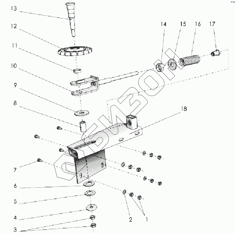 Графический каталог запасных частей к технике: Клевер ПСП-1210 "Falcon". Лифтер правый (натяжная звездочка)