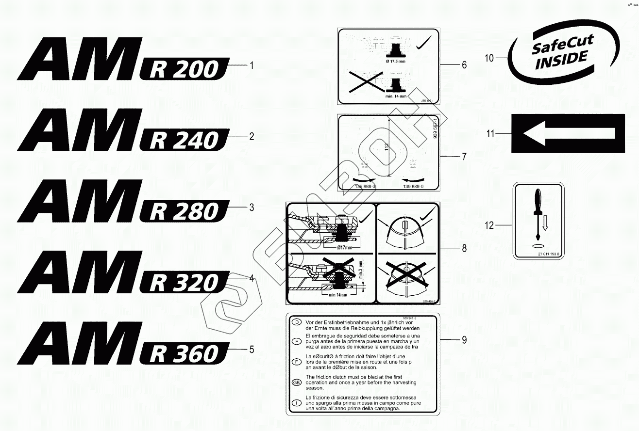 Графический каталог запасных частей к технике: KRONE ActiveMow R200. General information labels
