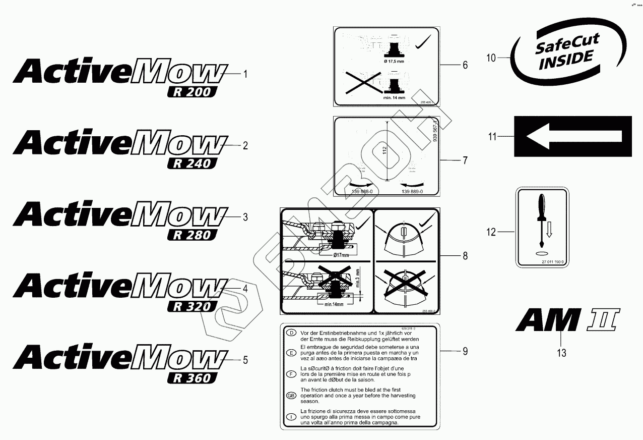 Графический каталог запасных частей к технике: KRONE ActiveMow R200. General information labels
