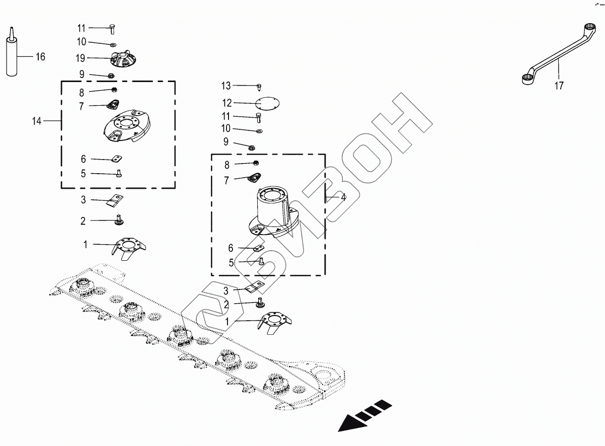 Графический каталог запасных частей к технике: KRONE ActiveMow R200. Blade fastening