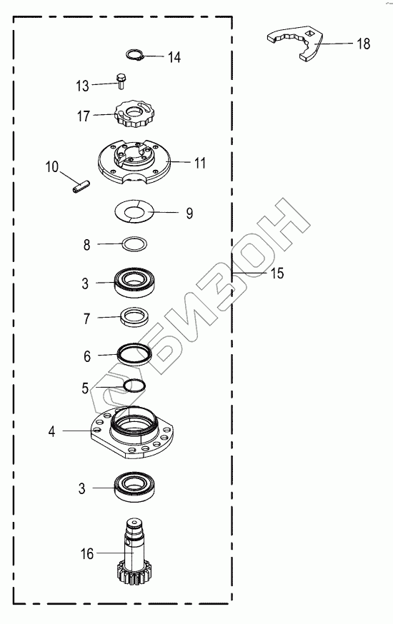 Графический каталог запасных частей к технике: KRONE ActiveMow R280. Bearing housing - right - SafeCut INSIDE