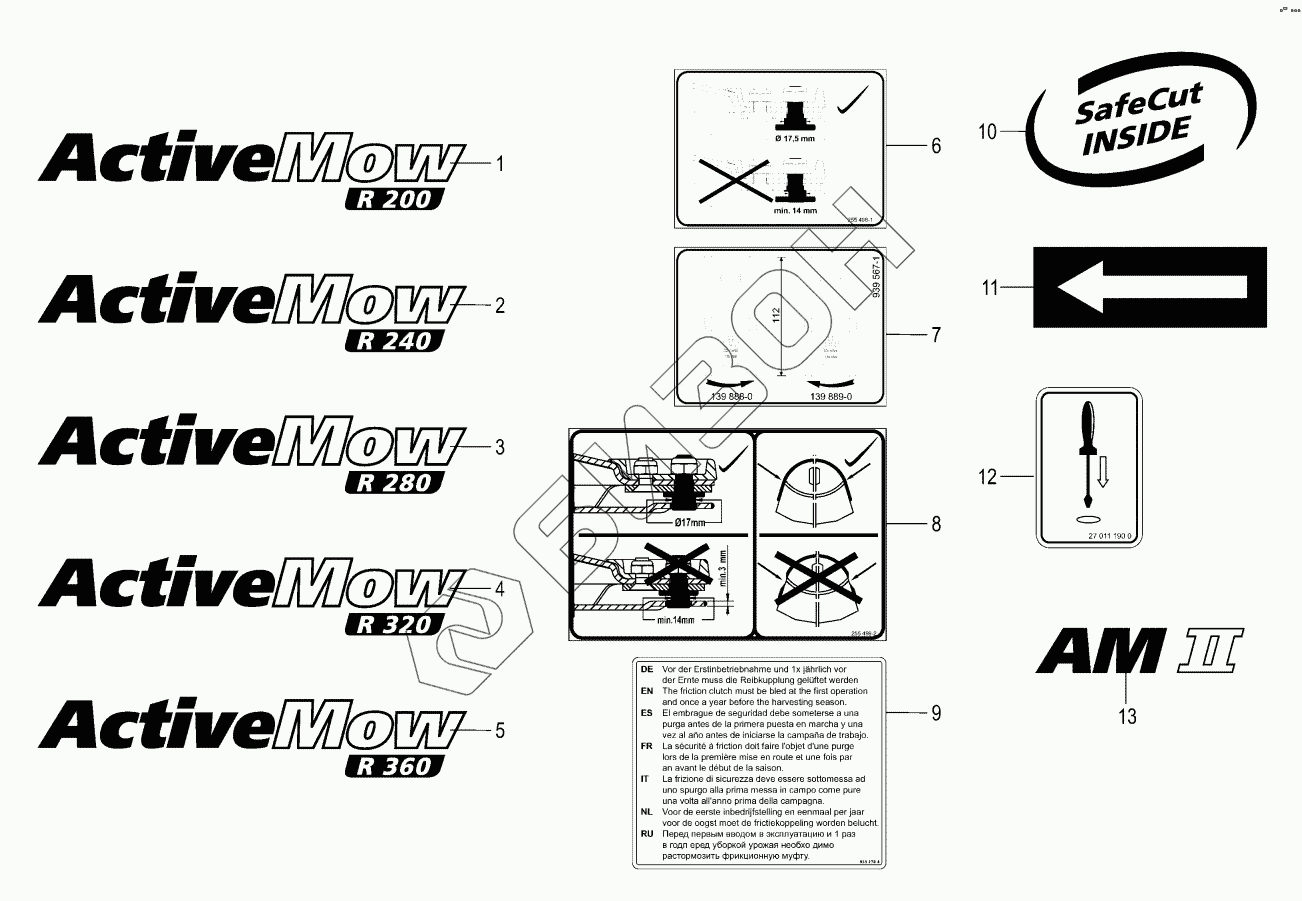 Графический каталог запасных частей к технике: KRONE ActiveMow R280. General information labels