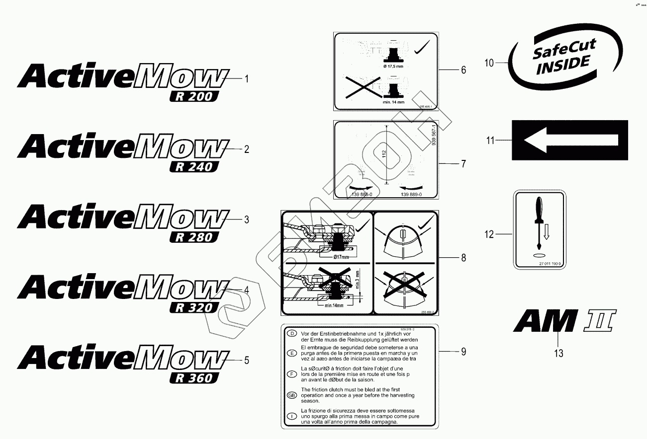 Графический каталог запасных частей к технике: KRONE ActiveMow R320. General information labels