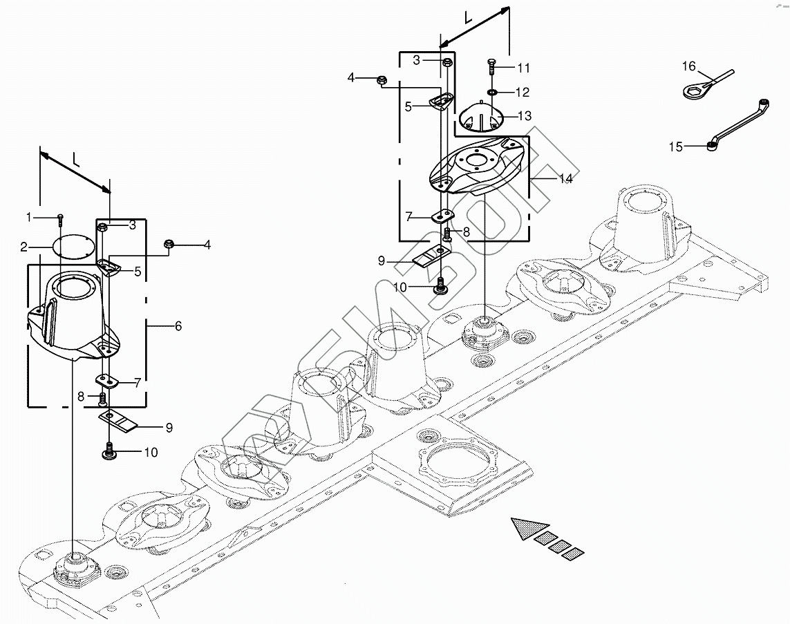 Графический каталог запасных частей к технике: KRONE BIG-M-400. Blade fastening - lateral-CV