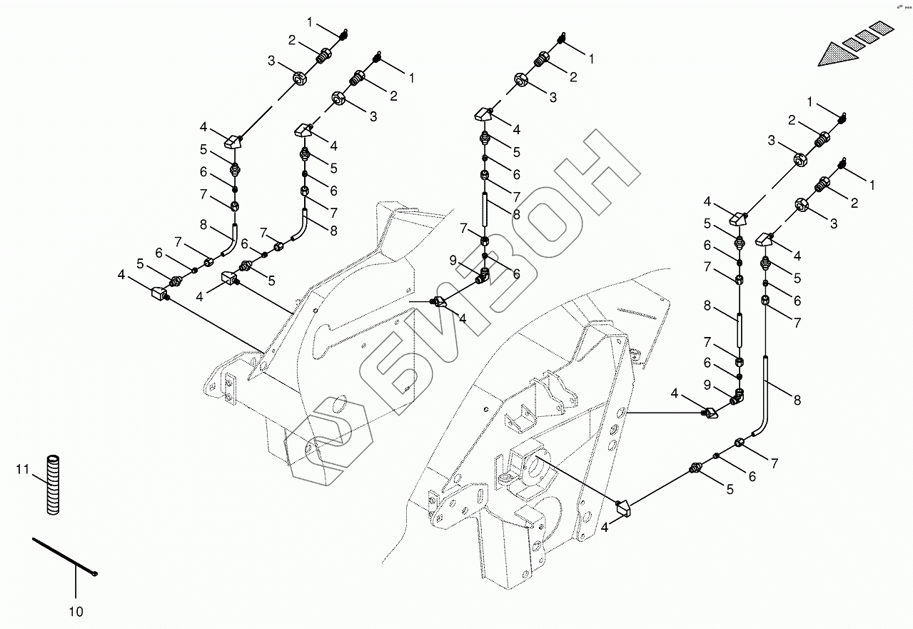 Графический каталог запасных частей к технике: KRONE BIG-M-400. Lubricating line - front-CRI
