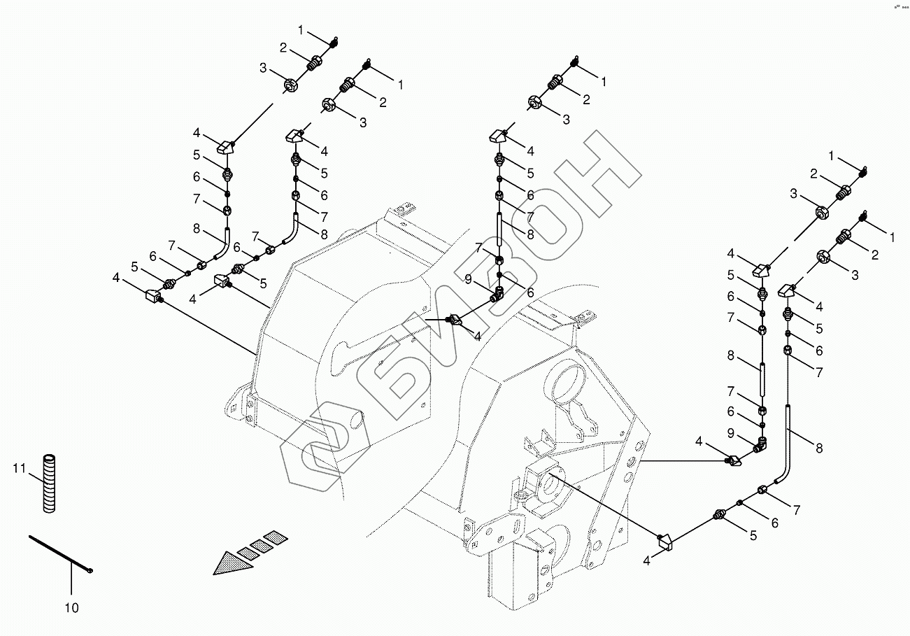 Графический каталог запасных частей к технике: KRONE BIG-M-400. Lubricating line / grease - lateral-CRI