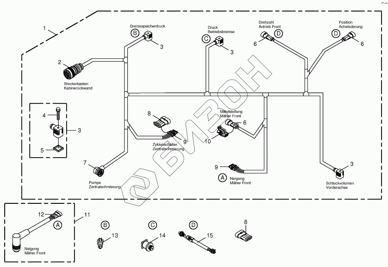 Графический каталог запасных частей к технике: KRONE BIG-M-400. Wiring Harness - front
