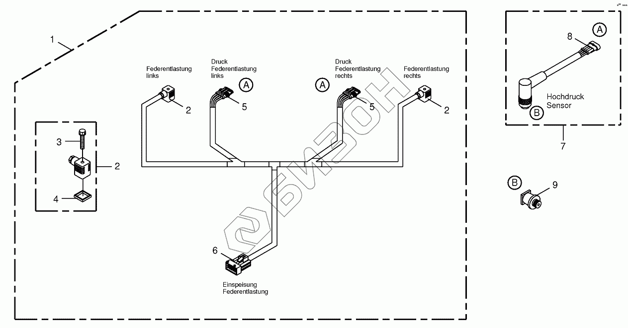 Графический каталог запасных частей к технике: KRONE BIG-M-400. Wiring Harness - spring compensation