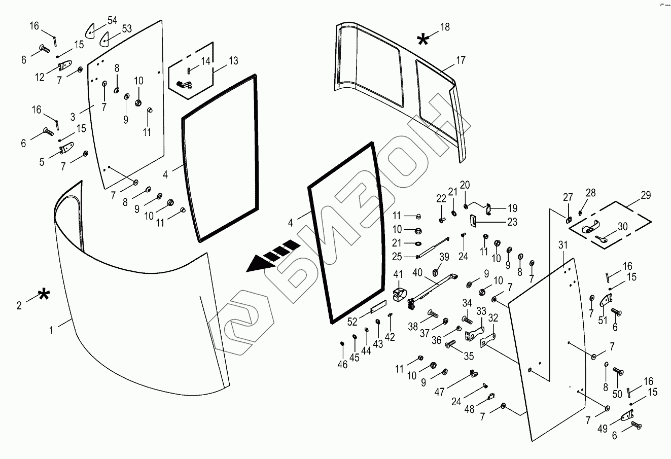 Графический каталог запасных частей к технике: KRONE BIG-M-420. Cab-glazing