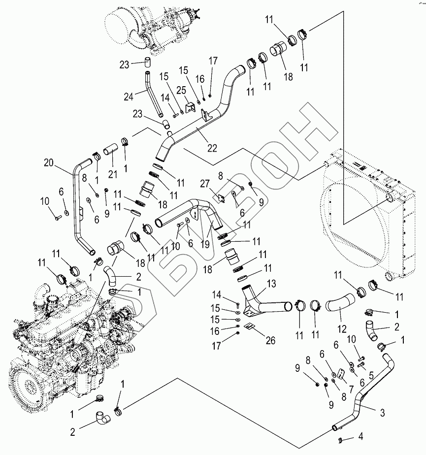 Графический каталог запасных частей к технике: KRONE BIG-M-420. Engine piping