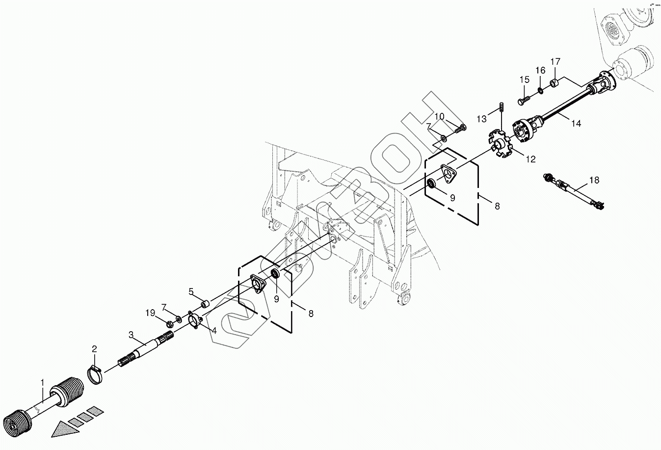 Графический каталог запасных частей к технике: KRONE BIG-M-420. Front auxiliary pto.stub