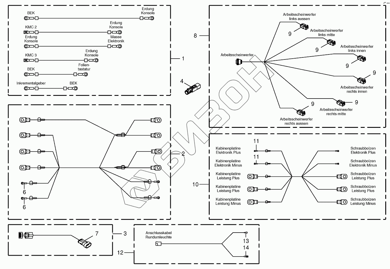 Графический каталог запасных частей к технике: KRONE BIG-M-420. Wiring harness-control box/cab