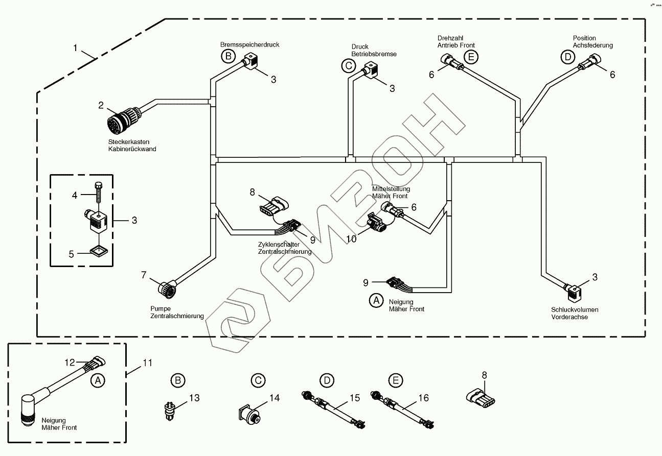 Графический каталог запасных частей к технике: KRONE BIG-M-420. Wiring Harness-front