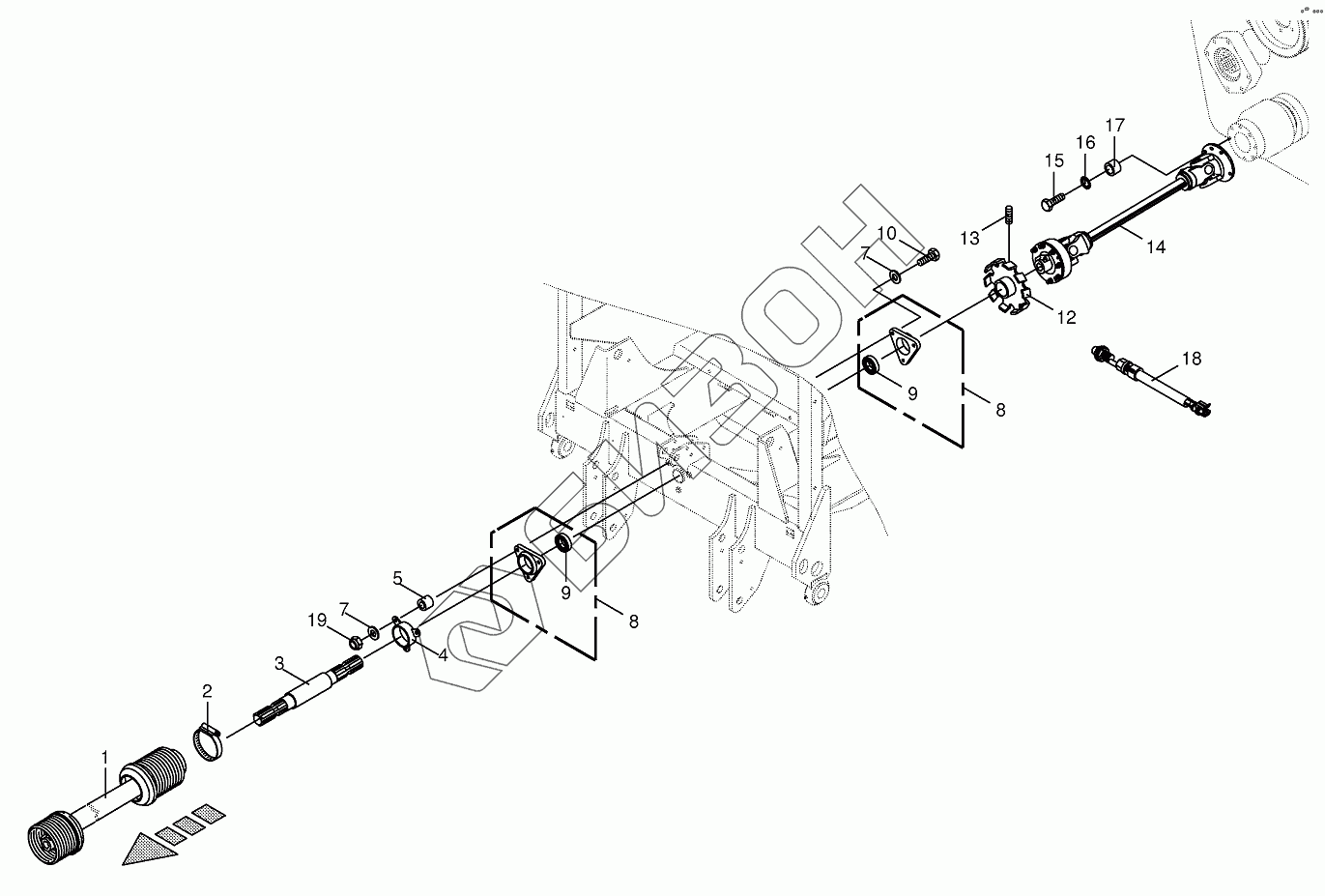 Графический каталог запасных частей к технике: KRONE BIG-M-420. Front auxiliary pto.stub