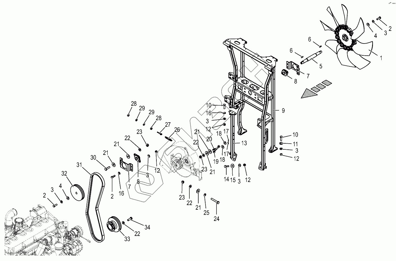 Графический каталог запасных частей к технике: KRONE BIG-M-420. Ventilator wheel/Drive