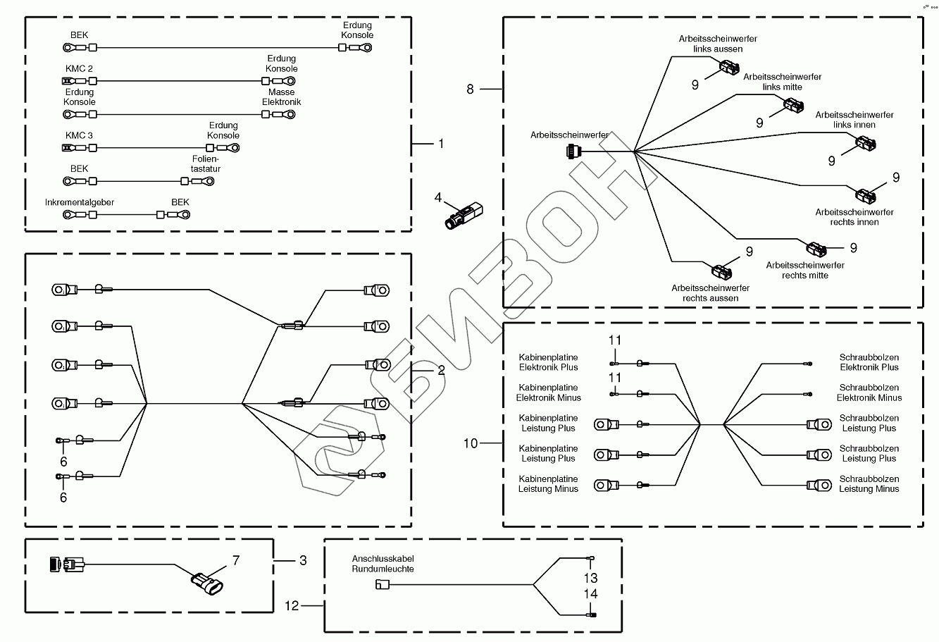 Графический каталог запасных частей к технике: KRONE BIG-M-420. Wiring harness-control box/cab