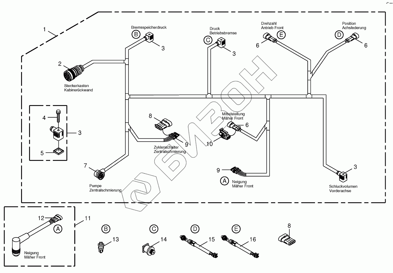 Графический каталог запасных частей к технике: KRONE BIG-M-420. Wiring Harness-front