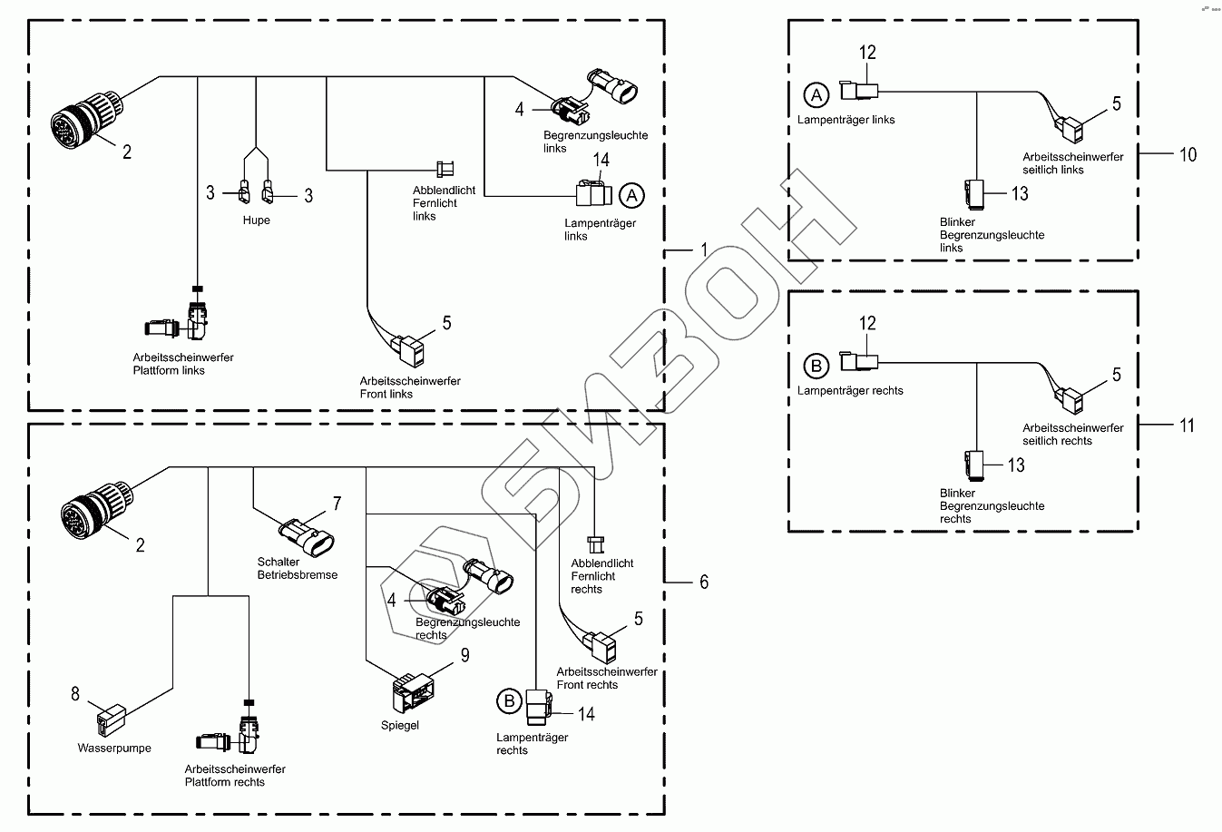 Графический каталог запасных частей к технике: KRONE BIG-M-420. Wiring Harness-lighting-front