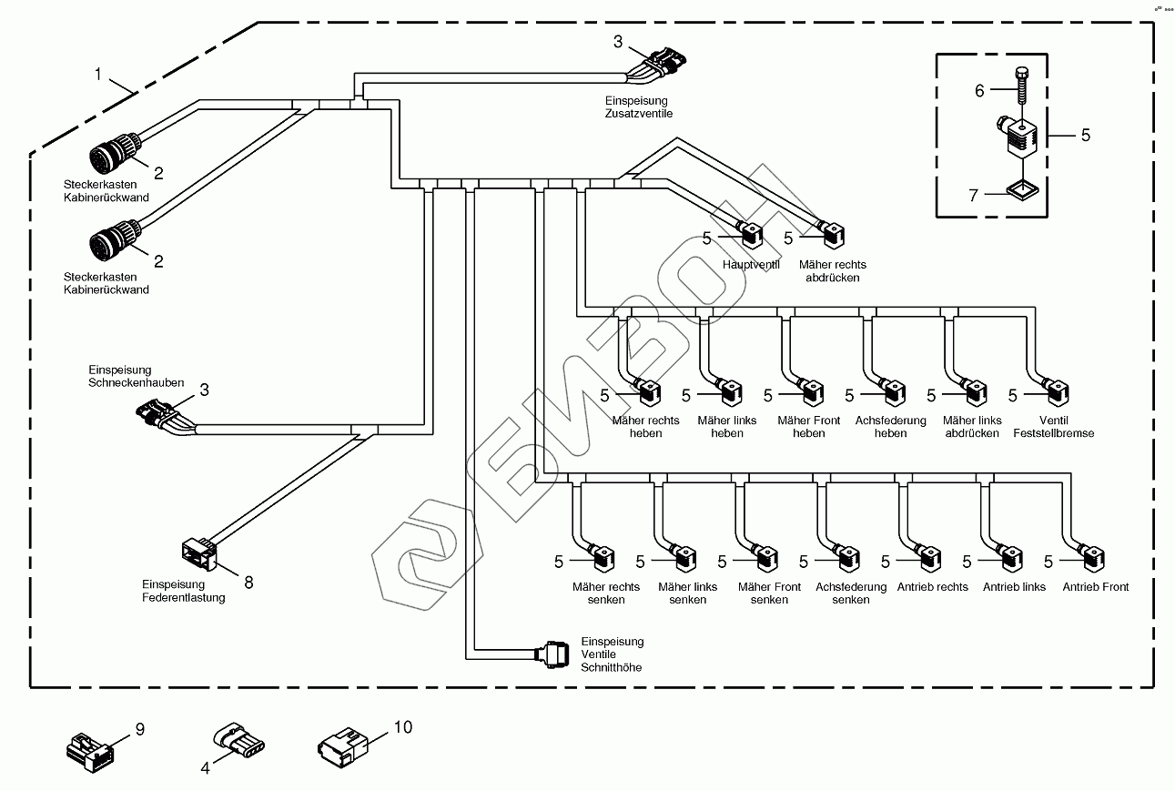Графический каталог запасных частей к технике: KRONE BIG-M-420. Wiring Harness-valve block
