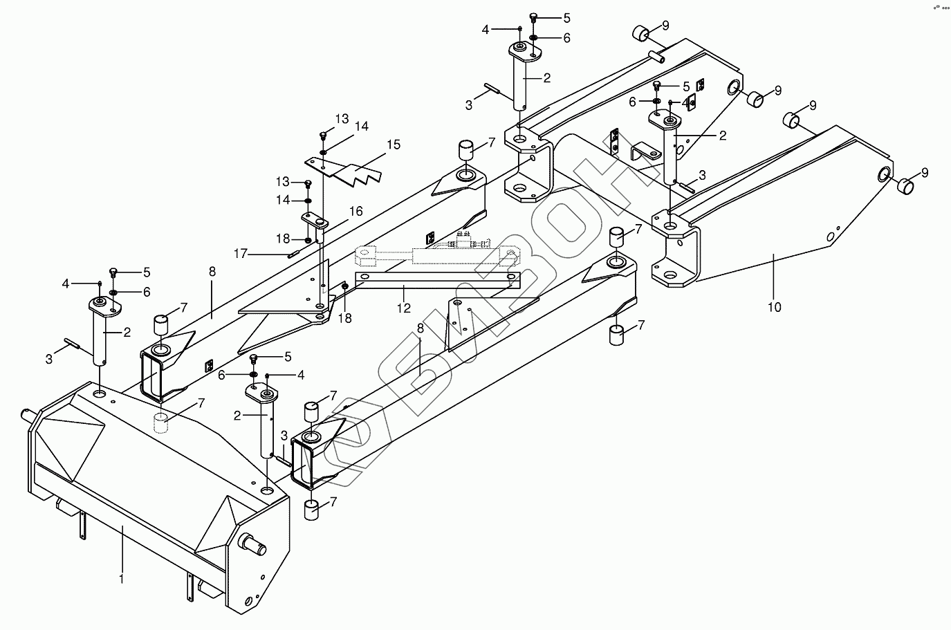Графический каталог запасных частей к технике: KRONE BIG-M-I. Front arm installed (slope)