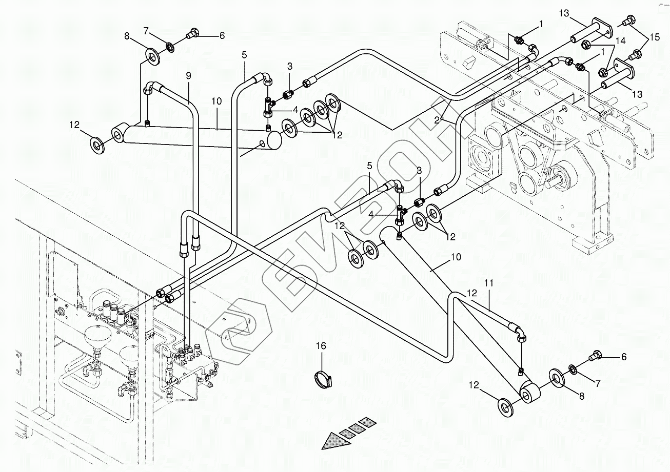 Графический каталог запасных частей к технике: KRONE BIG-M-I. Working hydraulics - hydraulic ram