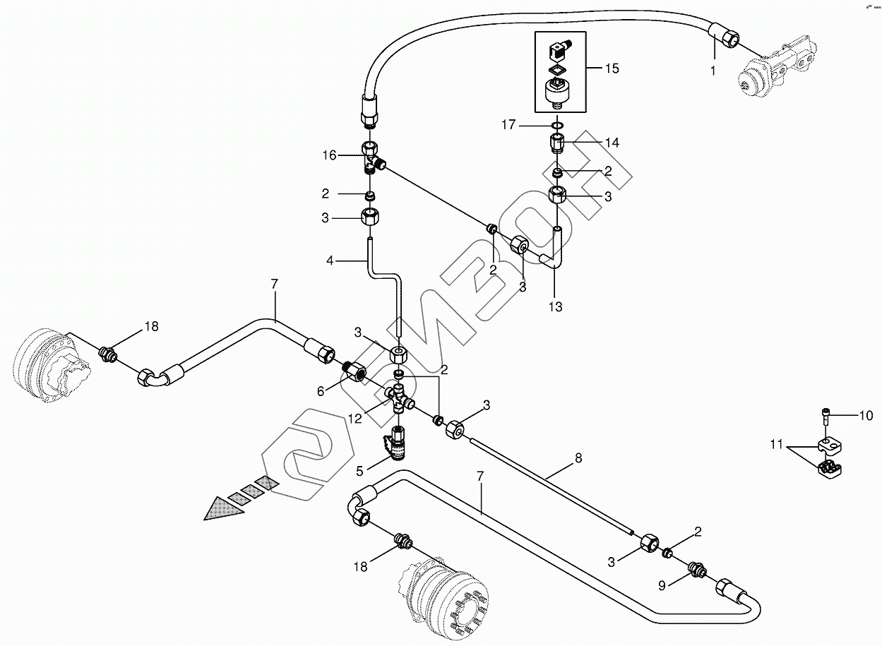 Графический каталог запасных частей к технике: KRONE BIG-M-I. Brake line - front