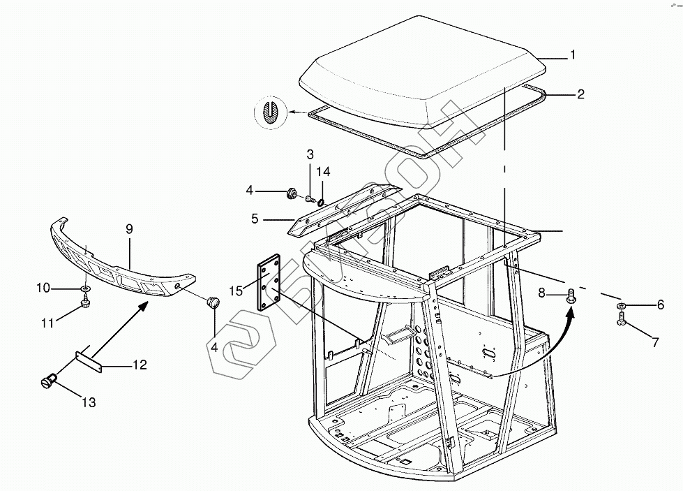 Графический каталог запасных частей к технике: KRONE BIG-M-I. Cab frame - Cab roof