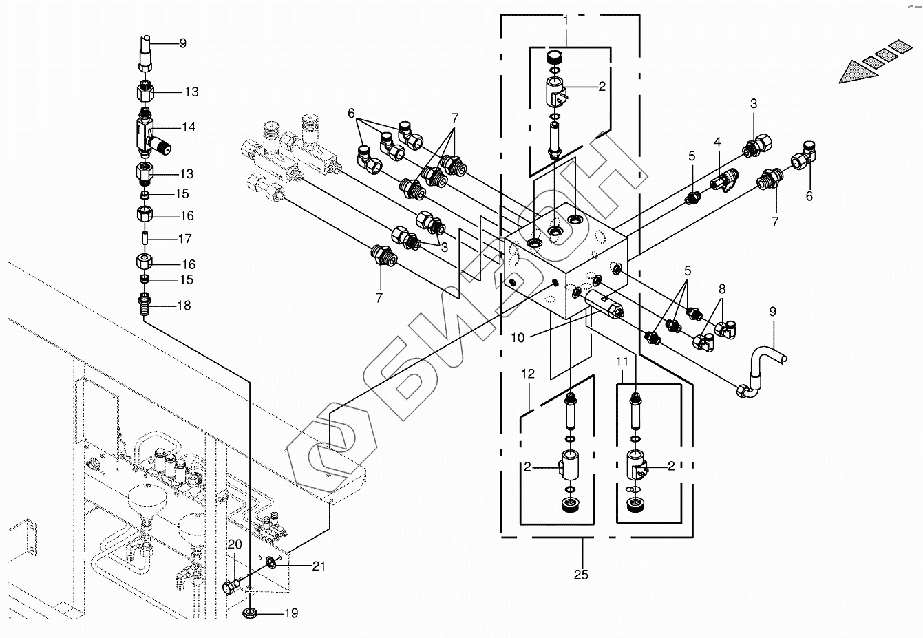 Графический каталог запасных частей к технике: KRONE BIG-M-I. Working hydraulics - valve block