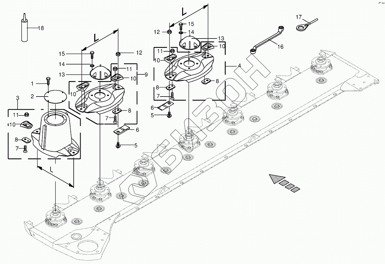 Графический каталог запасных частей к технике: KRONE BIG-M-II. Blade fastening - front-CV