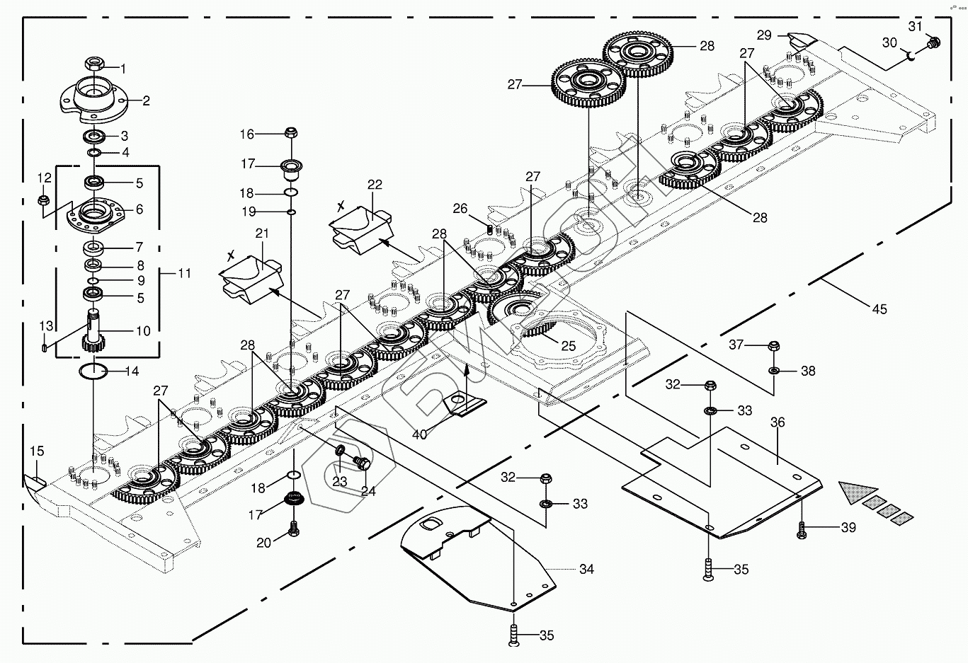 | 11 | 002530211 | Bearing housing-10 hole, cpl. |
