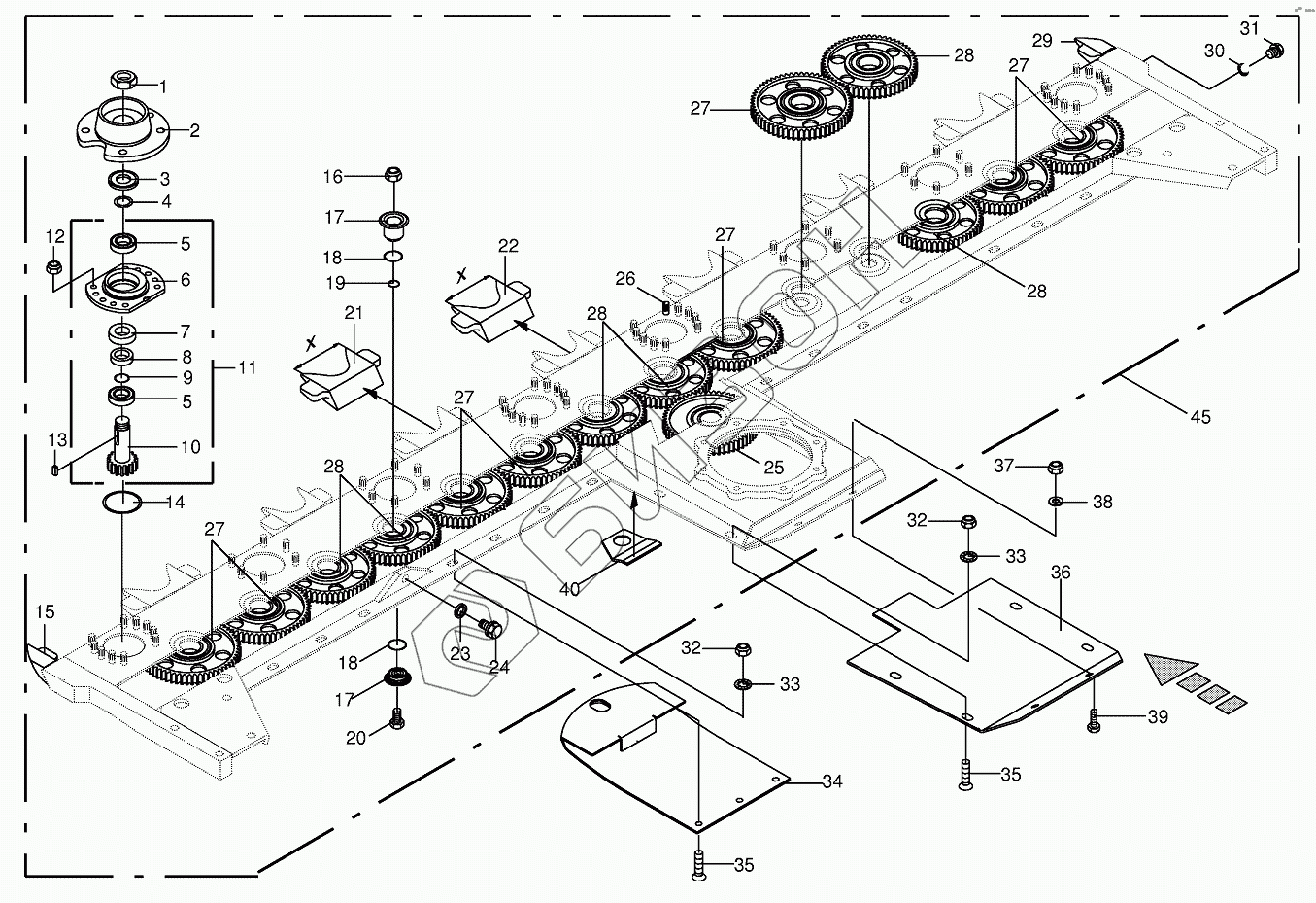 | 11 | 002530211 | Bearing housing-10 hole, cpl. |