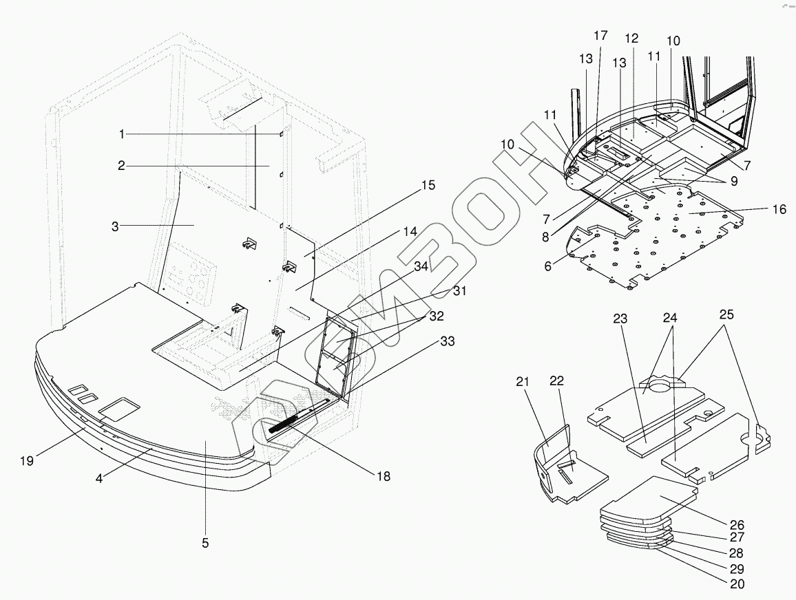 | 25 | 002206630 | Sound abatement-Roof, back |