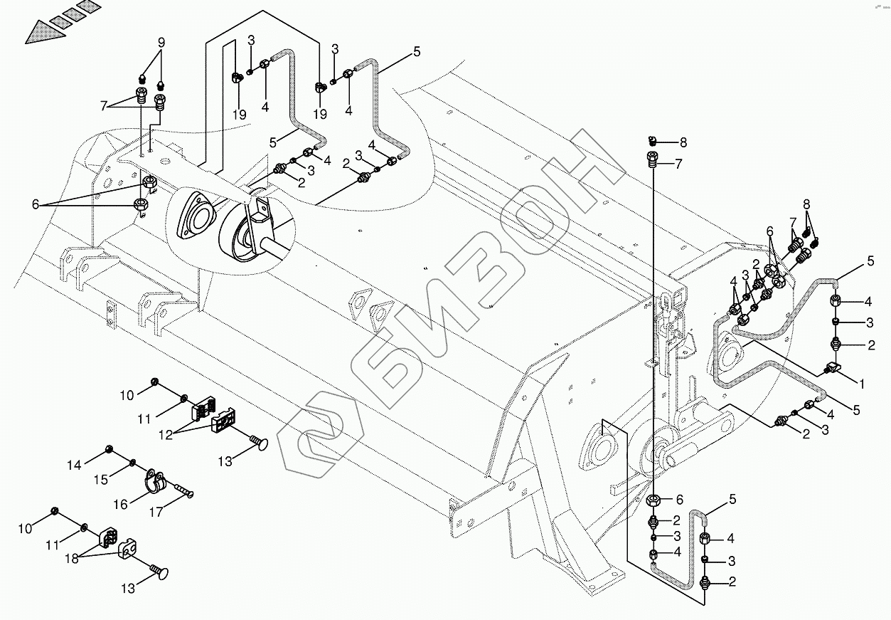 Графический каталог запасных частей к технике: KRONE BIG-M-II. Lubricating line / grease - lateral