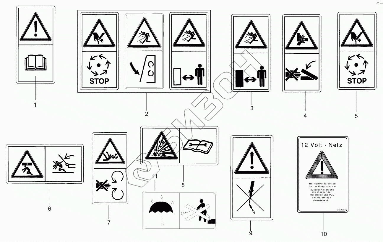 Графический каталог запасных частей к технике: KRONE BIG-M-II. Warning signs