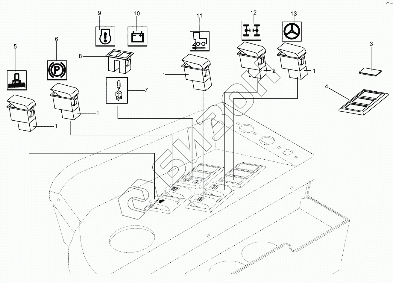 Графический каталог запасных частей к технике: KRONE BIG-M-II. Control switsches