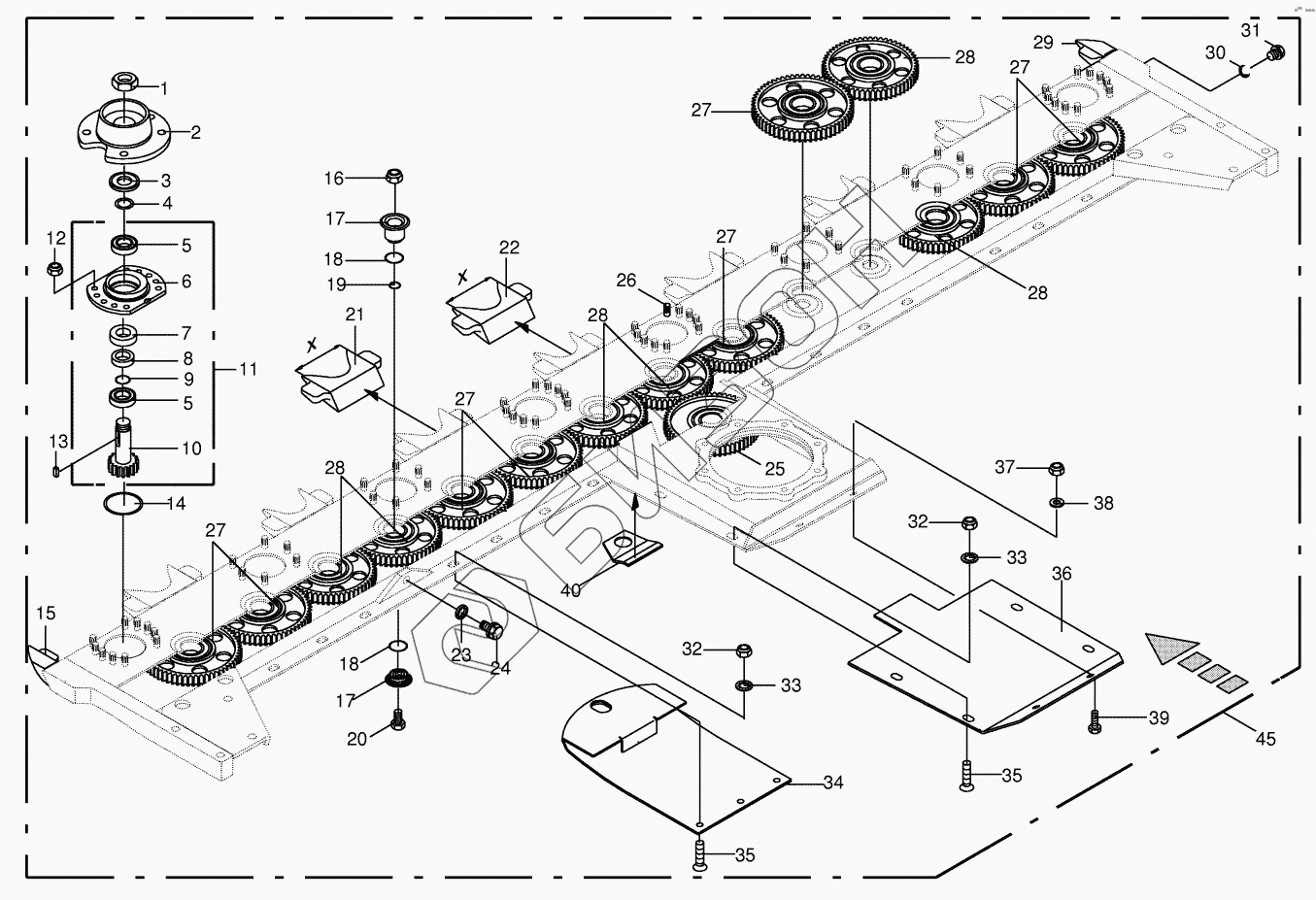 | 11 | 002530211 | Bearing housing-10 hole, cpl. |