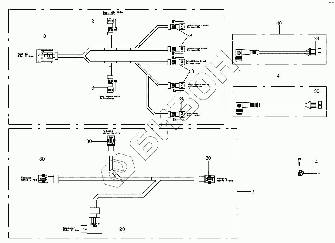 Графический каталог запасных частей к технике: KRONE BIG-M-II. Wiring Harness - cutting height